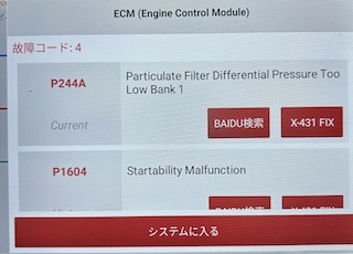 DPF再生後にチェックランプが点灯したという話なので スキャナーで強制再生してみるも作動せず